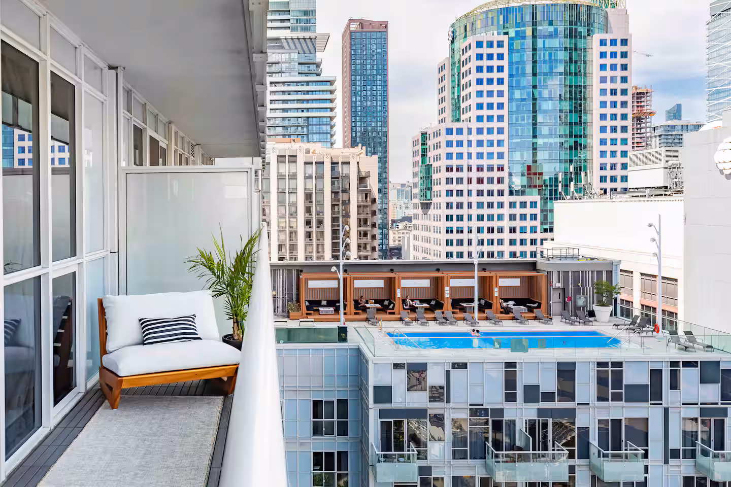 • Renovated recreational floor with fitness centre, jacuzzi, BBQ area, and iconic rooftop pool with cabanas and CN Tower views (seasonal: May–October)