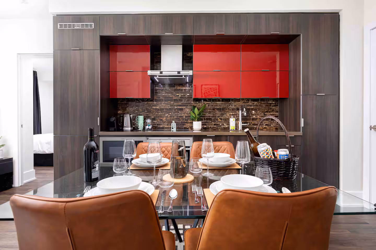 • Fully stocked kitchen with Nespresso® machine & pods, modern cookware, china, glassware, and spice cabinet